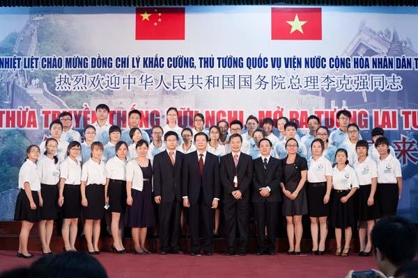 10月15日上午10时,在越南祖国阵线中央委员会主席、政府副总理阮善仁的陪同下,中国国务院总理李克强一行来到河内国家人文社科大学与中越两国青年见面交流。我校国际合作与交流处杨叶华副处长、两名越语教师以及外国语学院、华文学院在越留学的39名同学参加了此次交流活动。