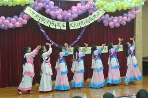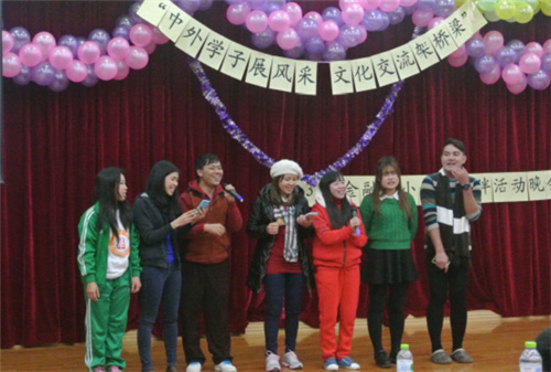 Cry Cry爵士舞作为开场,把晚会带入了热烈的气氛中,越南留学生的吉他弹唱、金融班的印度舞、泰国留学生的即兴舞蹈将晚会渐渐推入高潮,期间,丽江少数名族文化传习会的纳西族舞蹈和13汉教班同学的献唱作为客串节目出场,为晚会增添了不少亮点。活动过程中穿插的有奖竞答环节让同学们对中外文化有了更深了解。在柔美悦耳、极具民族风采的一曲巴乌演奏之后,中外学生《朋友》合唱让本次晚会进入尾声。